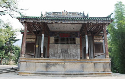 古戲臺位于姚江邊,寶珠觀東側(cè)。始建于明朝嘉靖三年,也就是1524年的黃姚古戲臺。它屬單檐歇山木石磚瓦結(jié)構(gòu),整座戲臺平面呈“凸”字形,是一座八柱式,帶后臺、廂臺、邊欄的亭閣式戲臺。