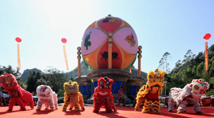 舊州主街長度約三百米,是舊州古鎮(zhèn)的主干道,也是本地民間各類民俗慶典活動的主要舉辦場地——如每年大年初一的舞龍舞獅、二月初二龍?zhí)ь^、八月初二的祭神長桌宴等。主街繡球陣共由99根紅柱,666個繡球組成,寓為“長長久久,六六大順”!