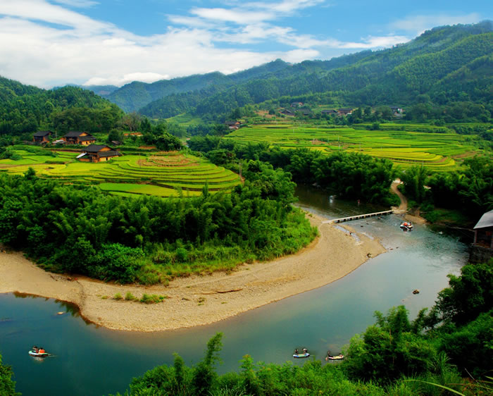 大洲生態(tài)農(nóng)業(yè)旅游區(qū),2005年12月由國家旅游局命名為"全國農(nóng)業(yè)旅游示范點"。位于融安縣長安鎮(zhèn)大洲村,與縣城僅一水之隔,面積約2.2平方千米。大洲四面環(huán)水、島上竹林成片、綠樹成蔭、瓜果飄香,如一顆明珠鑲嵌在融江中。洲上地勢平坦,土壤肥沃,耕地面積700畝,素以農(nóng)業(yè)為主,是縣城的無公害蔬菜生產(chǎn)基地,其中以大洲頭菜、蘿卜、涼薯等土特產(chǎn)名揚區(qū)內(nèi)外。洲上樹木蔥郁,古木參天,農(nóng)舍掩映,田園風(fēng)光優(yōu)美,兩岸翠竹連綿,岸邊百畝天然草坪與清澈寬闊的江水組成一幅美麗的畫面。景區(qū)修建了2000多米環(huán)洲游覽步道、小廣場、游客中心、碼頭、涼亭等一批公共設(shè)施,開放大洲浮橋、千年古榕、三友亭、瓜果長廊、無公害頭菜示范園、柚子園、樟樹王等10個景點。是集農(nóng)業(yè)觀光、休閑度假、無公害農(nóng)產(chǎn)品生產(chǎn)、教育、培訓(xùn)為一體的農(nóng)業(yè)旅游園區(qū)。