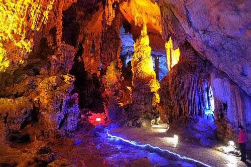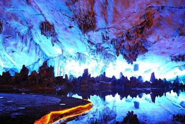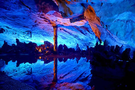 “桂林山水甲天下,蘆笛美景堪最佳!碧J笛巖是桂林山水一顆璀璨的明珠,蘆笛巖位于光明山南側(cè)山腰,洞深240米,游程近500米,是一處景致高度集中、景物極盡造化的神奇游覽佳境。在這個(gè)奇妙的巖洞中,琳瑯滿目的鐘乳石、石筍、石柱、石幔、石花擬人狀物,惟妙惟肖,構(gòu)成了三十多處景觀,有“紅羅寶帳”、“高峽飛瀑”、“盤龍寶塔”、“原始森林”、“簾外云山”、“水晶宮”等,可謂移步成景,步移景換。整個(gè)巖洞猶如一座用寶石、珊瑚、翡翠雕砌而成的宏偉、壯麗的地下宮殿。