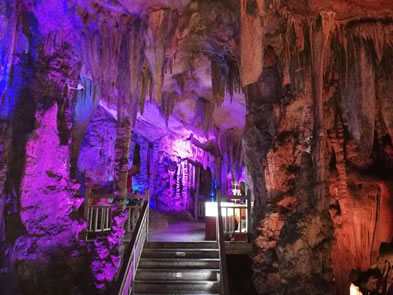 巖洞內(nèi)共分"石幔層林"、"天柱云山"、"水晶宮"以及"曲徑畫廊"四個(gè)洞天,有"獅嶺朝霞"、"高峽飛瀑"、"原始森林"、遠(yuǎn)望山城"、"盤龍寶塔"等20處景點(diǎn),被譽(yù)為"大自然的藝術(shù)之宮"。
