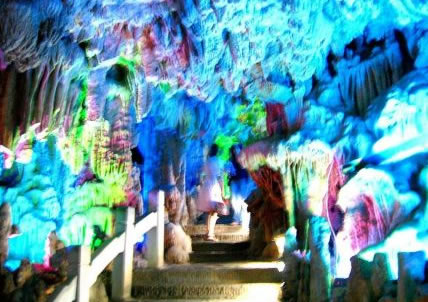 蘆笛巖是整個(gè)漓江風(fēng)景名勝區(qū)的重要組成部分,1959年籌建,1962年開放,1982年11月成為國務(wù)院頒布的第一批國家重點(diǎn)風(fēng)景名勝區(qū)。它擁有大自然賦予桂林山水清奇俊秀的巖溶風(fēng)貌。蘆笛巖洞深240米,游程500米。約70萬年前,因地下水沖刷和溶蝕,含碳酸鈣的滴水、流水與積水,因水分揮發(fā),二氧化碳重新沉淀,形成了千姿百態(tài)的鐘乳石奇觀。自洞頂垂下的叫石乳,自地上向上生長的叫石筍,石乳與石筍連接成石柱、石幔、石枝、石花、石瀑等;一些石頭中空,敲擊時(shí)發(fā)出的聲音清越入耳,又稱石琴、石鼓、石鐘;回乳石中含方解石微粒,在洞內(nèi)五彩燈光的映照耀反光,便形成"鉆石山"、"高峽飛瀑"等奇觀。