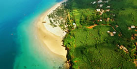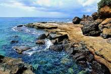 潿洲島的海灘以寬闊平坦的沙質(zhì)海灘為主,一般寬150~300米,沙礫層厚4~8米,平鋪于玄武巖之上層部岸斷間或有玄武巖出露。潮間帶一般比較寬闊,最寬者可達(dá)150米。潮下帶寬約60米,有珊瑚分布 。珊瑚的下面就是礁坪。被波浪打碎的珊瑚殘?bào)w很容易與殼沙礫等堆積膠結(jié)成海灘巖。潿洲島北港一帶的海灘巖從古瀉湖一直延伸到潮下帶上部,覆蓋于玄武巖之上。
