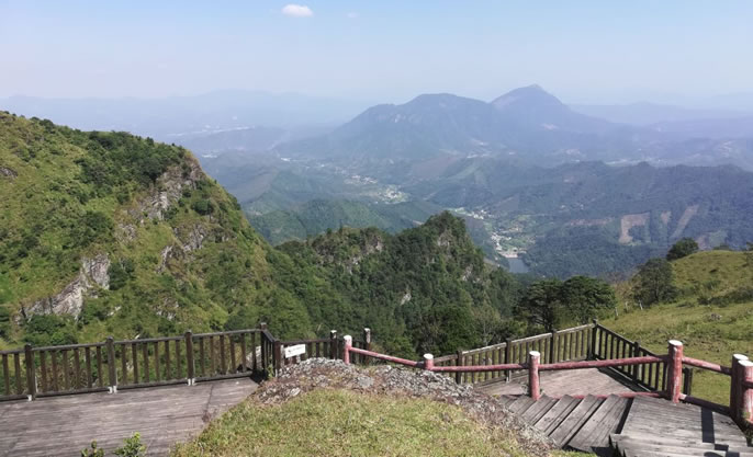 天龍頂國(guó)家山地公園位于岑溪市南渡鎮(zhèn),占地面積15平方千米。景區(qū)主峰天龍頂海拔1221米,相對(duì)高度221米,屬云開大山山脈的主峰。景區(qū)內(nèi)海拔高于1000米以上的山峰還有石豹頂、公婆頂、湖廣頂?shù)人淖椒。景區(qū)的自然資源具有多樣性,景區(qū)內(nèi)有高山湖泊、原始森林、溝壑峽谷、溪谷瀑布群、海拔1000米之上的高山草甸、海拔1200多米的丹霞山峰、延綿近數(shù)十里的斷層崖壁等等,形成了一個(gè)具有旅游觀光、休閑度假、戶外運(yùn)動(dòng)等多功能的復(fù)合型景區(qū)。同時(shí),天龍頂國(guó)家山地公園也是一個(gè)純天然自然氧吧,空氣中負(fù)離子含量高達(dá)35000個(gè)/立方米。