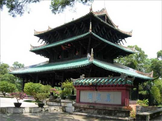 經(jīng)略臺真武閣,中國道教宮觀建筑,用于奉祀真武帝以鎮(zhèn)火災(zāi)。其結(jié)構(gòu)采用三層檐、歇山頂、穿斗式構(gòu)架,通高13.2米,面寬13.8米,進深11.2米,總面積168平方米。其采用穿斗式構(gòu)架方式,把近3000根大小不一的格木構(gòu)件鑿榫卯眼,斜穿直套,串聯(lián)嵌合,彼此扶持,互相制約,不用一釘一鉚,也沒有一個鐵構(gòu)件,以“杠桿結(jié)構(gòu)”原理組成一個穩(wěn)固的統(tǒng)一體。