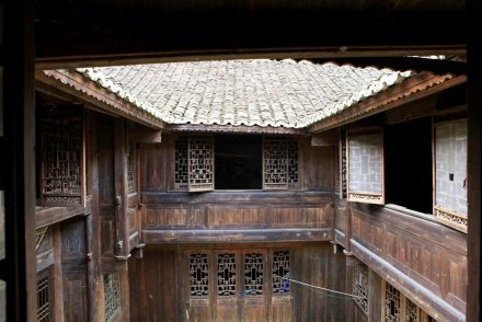 陶家院位于古城東北角,是清末木商陶明哲的住宅,為三間搭兩廂型建筑,四周圍高風(fēng)火墻,天井鋪青石板,窗扇均為雕刻精美的木板花窗,上面雕有精致的鳥獸,其中的鏤空玲瓏木板雕鏤更為奇特,書房內(nèi)有壁畫,家具陳設(shè)完全,工藝精良,裝飾典雅,屋前建有門樓及防火石缸,是古城最有代表性和保存最完好的古民居建筑。