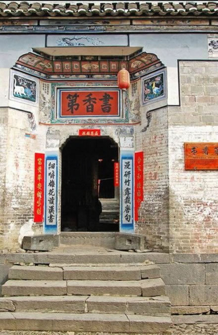 書香第位于南門大街,建于清末,書香弟意取文化之家,讀書之族,以知書識禮為立家之本。三間三進(jìn)二天井,雙重檐出水,堂屋窗格為各式花窗,門前放有一對石鎖,鏨刻有“連中三元”、“連升三級”字樣,防火缸鐫刻有古代兵器戟等,作為練武人家的象征,大門門板用堅(jiān)硬的木材青杠做成,十分牢固,門后地面安有青石鑿成的頂門槽,屋角備有頂門扛,供夜晚頂門使用,是隆里的典型民居。