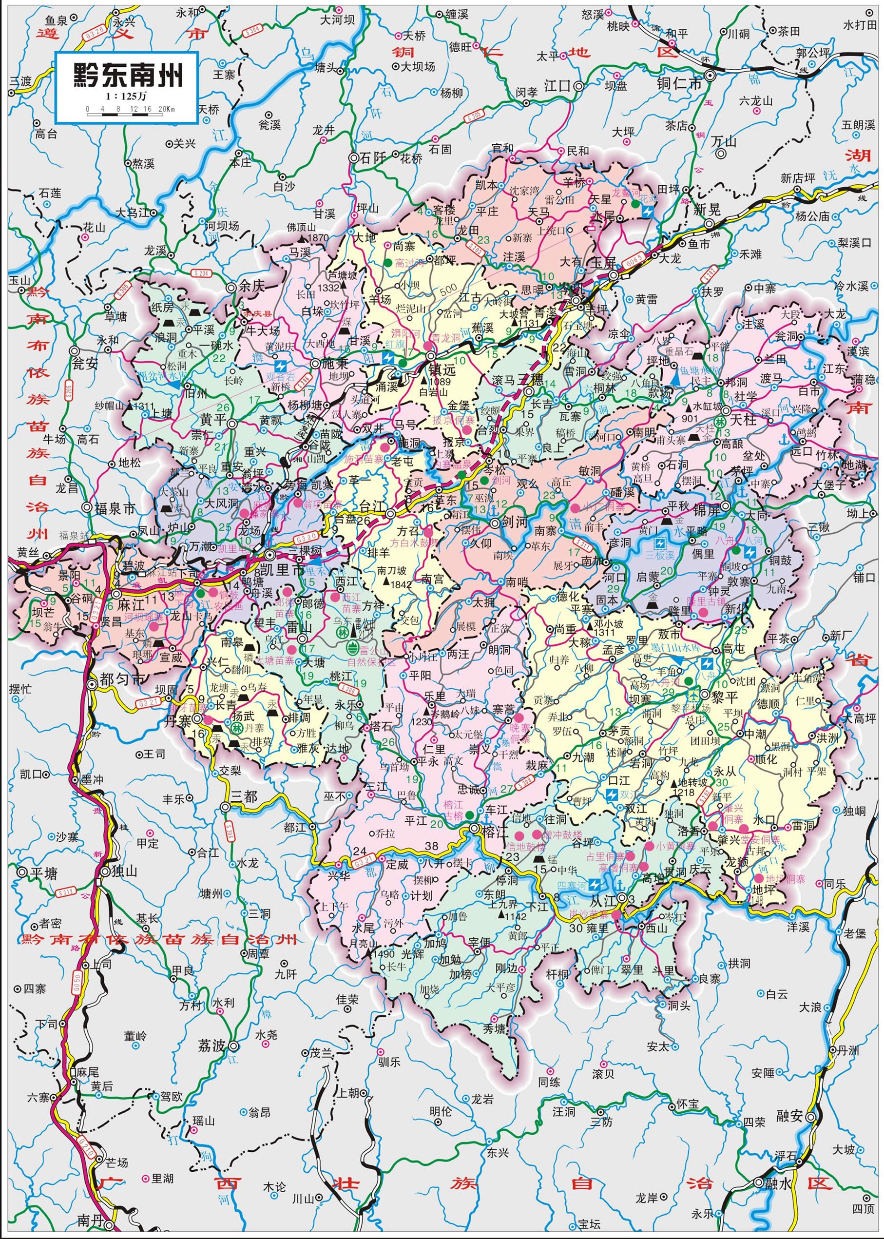 黔東南苗族侗族自治州,貴州省轄自治州,位于貴州省東南部,東與湖南省懷化市毗鄰,南和廣西壯族自治區(qū)柳州市、河池市接壤,西連黔南布依族苗族自治州,北抵遵義、銅仁兩市,總面積30282平方千米。全州轄15個縣,1個縣級市。全州常住人口373.13萬人。
