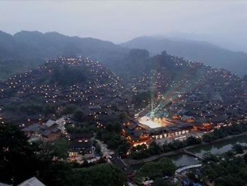 黃昏時(shí)分,西江千戶苗寨千家萬(wàn)戶就亮起了燈。隨著天色越來(lái)越暗,西江千戶苗寨變成燈的海洋,西江千戶苗寨呈現(xiàn)牛頭的形狀。西江千戶苗寨景區(qū)在山坡高處的路邊修建了觀景臺(tái),開通觀光車。