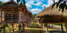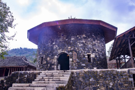 禾倉(cāng)是瑤山古寨標(biāo)志性的歷史古建筑,有的禾倉(cāng)已存在上百年。禾倉(cāng)建筑獨(dú)特,用四柱支撐,上層墊以木板,周圍用竹籬笆圍成圓形,頂上蓋以毛糙,這些禾倉(cāng)里面用來(lái)存放糧食和貴重物品,具有防潮、防盜、防鼠的功能。禾倉(cāng)下面通常會(huì)放置一些生產(chǎn)工具,或者供寨上的人們聚會(huì)聊天。