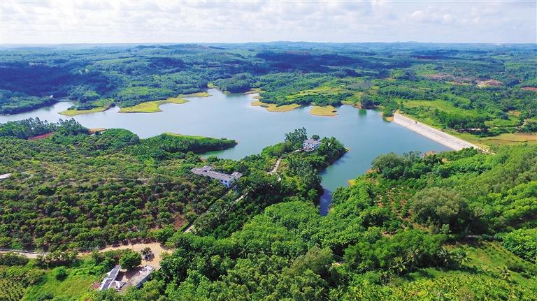 南麗湖水面1200公頃,是海南省瓊北地區(qū)最大的人工淡水湖。這里湖水清澈,碧波蕩漾,四周膠林環(huán)抱,綠樹翠竹臨岸,山清水秀,明凈瑰麗,環(huán)境幽靜雅逸,氣候溫和,終年宜泳,宜浴、宜釣。遠眺南麗湖,煙波浩渺,水接著天,天連著水,碧波粼粼,湖面上空麗日融融,白云悠悠,徐網(wǎng)習(xí)習(xí)。水面云影浮游。南麗湖水域,原來是低谷、高山、巖嶺。1958年,定安人民在這里修起南扶水庫,于是低谷積水成湖,原來的高山峻嶺成了湖中小島,有方的,有圓的,有長的,共有13個。