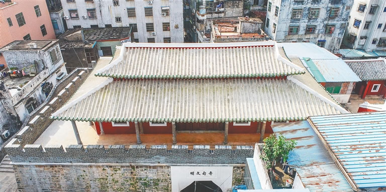 瓊山縣學宮位于府城文莊路5號,據(jù)清朱為潮篡《瓊山縣志》載:文廟始建于宋代,原設(shè)在?谄,歷代多次遷移,最后置于府城南門和護城河北邊300米處,即今遺址。 明洪武四年(1371年),瓊山知縣李思迪遷建于府城東北東坡書院內(nèi)(即今蘇公祠)。九年,知縣陳概又遷建于府城南郊。弘治十一年(1498年),廣東按察司副使陸淵遷建于府學之西,即今遺址。遷建后的縣學宮居于城內(nèi)鬧區(qū),靠近府署,接鄰府學宮,方便了生員習禮和各種慶典活動。 清光緒二十三年(1897年)秋,瓊山名士林之椿、曾對顏、粘世王召、王國棟、柯玉珊、王駿聲、孫生英等人發(fā)起重修。 瓊山縣學宮原有后殿、大成殿、東廡、西廡、欞星門、丹墀等建筑,十分雄偉壯觀,為瓊山縣歷代儒學教育機構(gòu),占地面積最大時“直500尺,橫128尺,面積64000方尺”。學宮現(xiàn)僅存大成殿,面闊5間,進深3間,坐南朝北,重檐歇山頂。梁架結(jié)構(gòu)為七架木結(jié)構(gòu)式,梁檁之間雕刻精美的龍獅、蓮花、卷云、紋刻,莊重典雅。2013年,瓊山縣學宮大成殿重修完成,現(xiàn)為海南省重點文物保護單位。