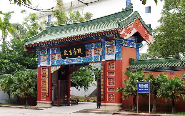 瓊臺書院位于府城中山路8號,相傳是后人為紀念海南第一才子、明朝大學士丘濬而建。始建于清康熙四十四年(1705年)據(jù)傳由于丘濬號瓊臺,人稱瓊臺先生,故書院由此得名。 書院現(xiàn)今是瓊臺師范學院的校址,其主樓奎星樓高二層,綠瓦、紅廊、白墻,是一座具有民族特色的磚木結(jié)構(gòu)建筑,至今保存完好。樓內(nèi)雕梁畫棟,異常別致;樓前綠樹成蔭,環(huán)境秀麗雅靜。著名的粵劇、瓊劇《搜書院》的故事就發(fā)生在此,瓊臺書院隨著《搜書院》而蜚聲海內(nèi)外。