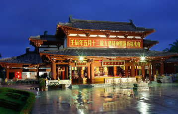 龍五爺財(cái)神殿位于三亞南山龍脈財(cái)穴之地,供奉著南海龍王第五子——圣衍,即“天下第一財(cái)神”——龍五爺。龍五爺財(cái)神殿由三個(gè)部分組成:一是招財(cái)大殿,開(kāi)示信眾招財(cái)進(jìn)寶;二是地宮財(cái)庫(kù),護(hù)佑信眾守財(cái),護(hù)財(cái);三是。五爺萬(wàn)佛閣,護(hù)佑信眾福祿傳世,富貴傳家。龍五爺財(cái)神招財(cái)大殿,開(kāi)示信眾如何求財(cái)?shù)姆ㄩT(mén)。在龍五爺財(cái)神殿的大殿之上,有八根財(cái)柱,分別代表了龍五爺開(kāi)示眾生如何正當(dāng)求財(cái)?shù)陌舜蠓ㄩT(mén),只有依五爺開(kāi)示,樹(shù)立了正確的八大財(cái)富觀,才能求財(cái)如意。