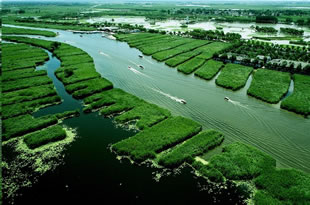 安新白洋淀景區(qū)的地形地貌是由海而湖,由湖而陸的反復(fù)演變而形成的,白洋淀的水域構(gòu)造獨特,它既有異于中國南方的內(nèi)陸湖泊,又不同于北方的人工水庫,它不是連在一起的一片汪洋,而是由多條河流將各個淀泊連在一起,從而形成河淀相連,蘆蕩蓮塘星羅棋布,一個個淀泊既相互分割又相互聯(lián)結(jié)的布局。