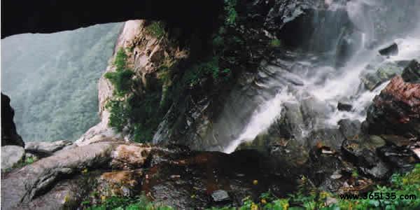 天生橋瀑布群,在阜平縣城西南30多公里處百草坨東側(cè),分布著九個大瀑布,一座天然形成的橋梁,被專家鑒定為中國北方最大的瀑布群和由變質(zhì)巖形成的中國最大的天生橋。瀑布群集中在與百草坨相連的一條溝谷中,最高的瑤臺瀑布落差112.5米。天生橋是由瀑流沿山谷裂隙沖蝕、崩塌形成的,長27米,寬13米,高13米,與流量最大、落差最高的瑤臺山銀河瀑布組合,形成了一個天然地質(zhì)奇觀。盛水期飛流直下,如天馬奔騰,驚天動地;枯水期清流潺潺,聲韻清脆,宛如輕音樂協(xié)奏曲。冬季瀑布水凝,生成千千萬萬、大大小小、姿態(tài)各異的冰柱,猶如鬼斧神工造化的玉雕。