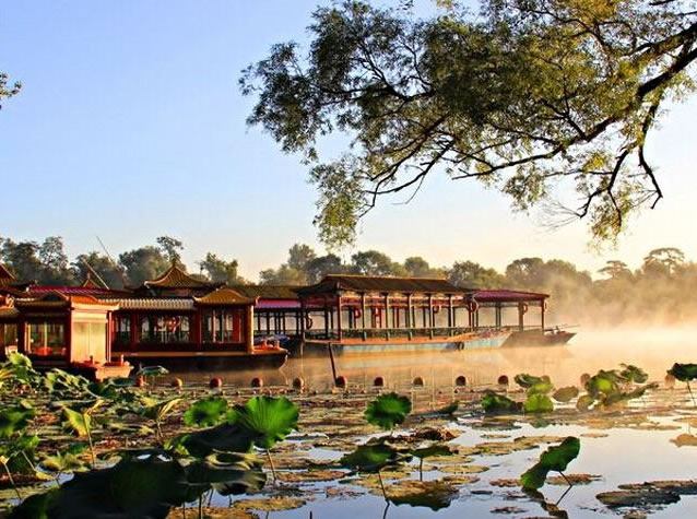 清康熙二十年(1681年),清政府為加強(qiáng)對(duì)蒙古地方的管理,鞏固北部邊防,在距北京350多公里的蒙古草原建立了木蘭圍場(chǎng)。每年秋季,皇帝帶領(lǐng)王公大臣、八旗軍隊(duì)、乃至后宮妃嬪、皇族子孫等數(shù)萬人前往木蘭圍場(chǎng)行圍狩獵,以達(dá)到訓(xùn)練軍隊(duì)、固邊守防之目的。為了解決皇帝沿途的吃、住,在北京至木蘭圍場(chǎng)之間,相繼修建21座行宮,熱河行宮——避暑山莊就是其中之一。避暑山莊及周圍寺廟自康熙四十二年(1703年)動(dòng)工興建,至乾隆五十七年(公元1792年)最后一項(xiàng)工程竣工,經(jīng)歷了康熙、雍正、乾隆三代帝王,歷時(shí)89年。在英法聯(lián)軍攻打北京時(shí),咸豐皇帝就帶著一批大臣逃到了這里。