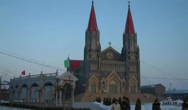 張莊天主教堂,歷史久遠(yuǎn),建筑宏偉,風(fēng)格別具,中外馳名,有“華北第一堂”之稱。此堂位于縣城東張莊村,分東西兩個大院,占地共315畝。據(jù)歷史資料記載,公元1856年(清咸豐六年)5月,羅馬教廷決定從法國遣使會管理的北京教區(qū)劃一部分歸法國耶穌會管理,在河北東南部成立一個新教區(qū),叫直隸東南教區(qū),并委任上海教區(qū)法國耶穌會會士朗懷仁為第一任代牧主教。1861年3月,朗懷仁主教決定將直隸東南教區(qū)首府遷至獻(xiàn)縣,選定城東一公里處的張家莊(現(xiàn)張莊村)建立總堂,該教區(qū)位于東經(jīng)111度至115度,北緯35度至39度之間,它的北部和東北部是北京教區(qū),西部是直隸西南教區(qū),南部是山東教區(qū),南北約520公里,東西約120公里轄河間、大名、廣平三府,深、冀、景、開、磁五州及三十三個縣城及屬地教務(wù)。