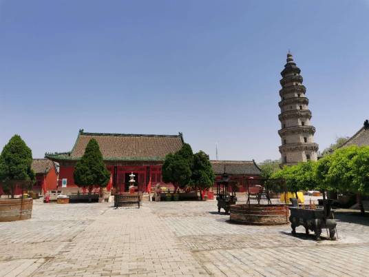 寶云寺內(nèi)有一塔,高36.5米,塔體為八面棱錐體磚木結(jié)構(gòu),自四層以上四面有門,塔的各層建筑風(fēng)格各異,或成鴛鴦斗拱,或成梅花斗拱,雄渾古樸,氣勢磅礴。若登塔頂,需有一定的勇氣,因?yàn)槊康且粚佣家@塔沿半圈,找到另一側(cè)的入口。寶云塔原名擎天塔,位于衡水市區(qū)西南的舊城村東。該塔原在寶云寺內(nèi),因此稱寶云塔。