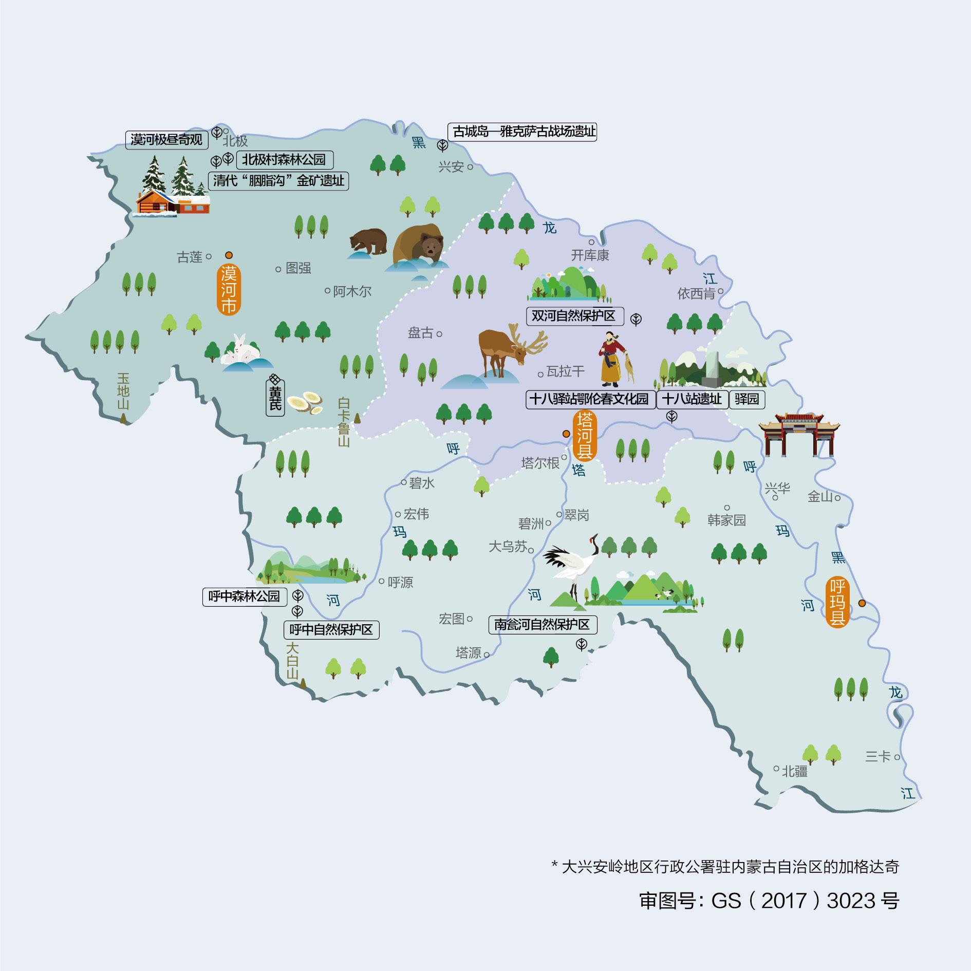 大興安嶺地區(qū)轄4個(gè)區(qū)、1個(gè)縣級(jí)市、2個(gè)縣: