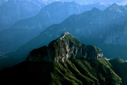 道教素有“南有金頂在武當(dāng),北有鐵頂在太行”之說(shuō),其中的鐵頂就是老爺頂。老爺頂海拔1570米的云際孤峰之上,峰頂“玄天上帝”大殿等建筑群全石無(wú)梁,八封窿頂,鐵瓦覆頂,還有鐵鑄的玄武神像、鐵鼎、鐵鍋等等,一切都以“鐵”聞名著稱,被譽(yù)為“天下第一鐵頂”。