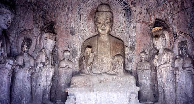 龍門石窟與甘肅敦煌莫高窟、山西大同云岡石窟并稱為“中國三大石刻藝術(shù)寶庫”。石窟始鑿于北魏孝文帝時(shí)(公元471~477年),歷經(jīng)400余年才建成,迄今已有1500年的歷史,龍門石窟南北長約1公里,現(xiàn)存石窟1300多個(gè),窟龕2345個(gè),題記和碑刻3600余品,佛塔50余座,佛像97000余尊。其中以賓陽中洞、奉先寺和古陽洞最具有代表性。