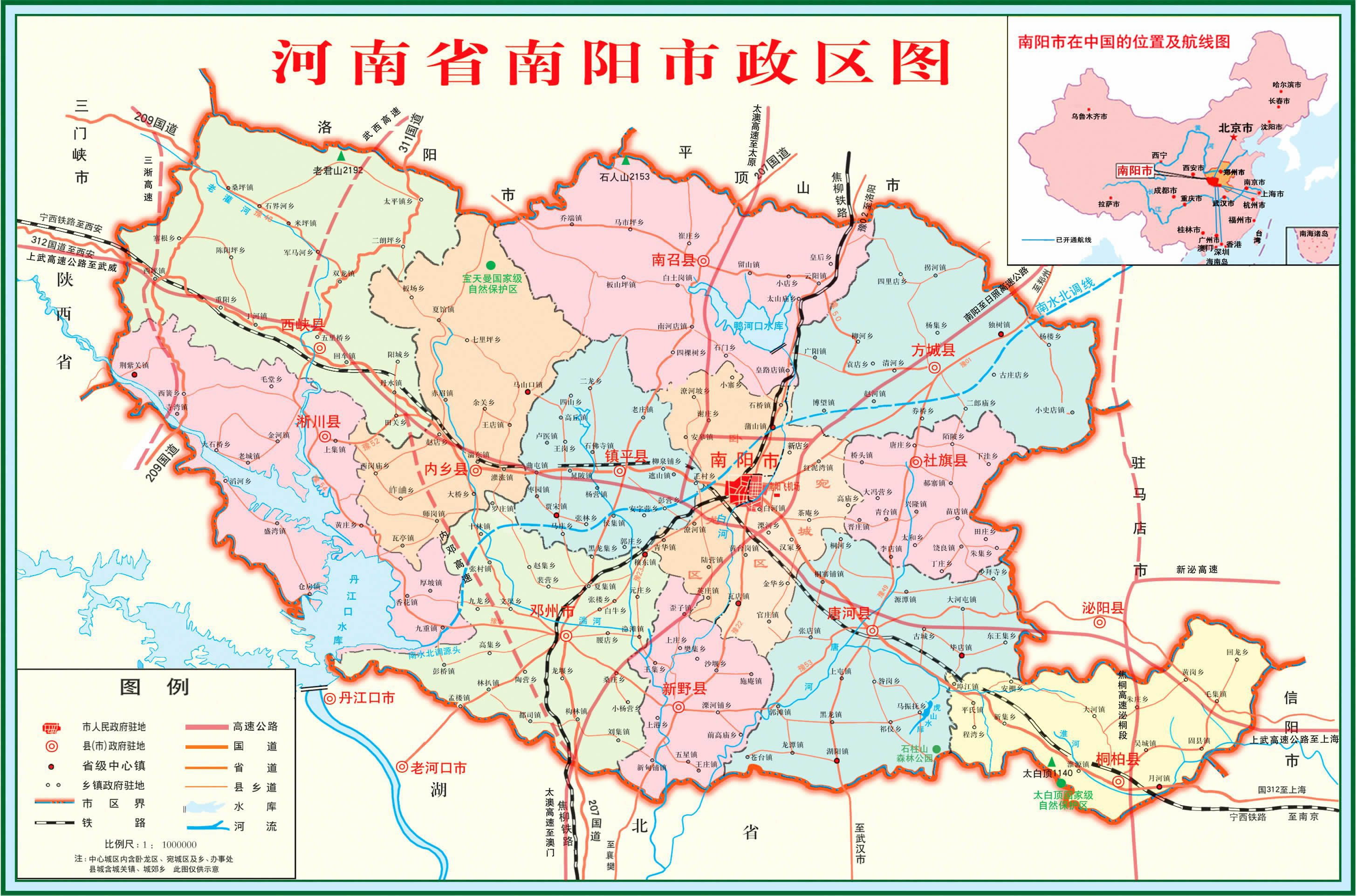 南陽市轄2個(gè)市轄區(qū)、10個(gè)縣,代管1個(gè)縣級(jí)市: