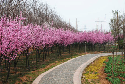 萬柳園位于人工湖的西側(cè),占地20634平米。主要種植楊柳科、棕櫚科、木犀科、薔薇科、松科等植物。其中楊柳科植物14種,60個品種。該園環(huán)湖石璣臨流,綠蔭接岸。以青翠柳色作為園子的景觀基調(diào)。沿湖堤岸柳樹、碧桃間隔種植,西側(cè)棕櫚點綴其間,山坡上種植大葉女貞、雪松、白皮松等常綠樹種,湖邊、林下種植景天等地被植物,園路沿途栽種垂柳、金絲柳、紅心柳、龍爪柳、翠竹柳、旱柳、銀芽柳、饅頭柳等特色柳樹。園中還片植碧桃、紅葉李等觀花、觀葉樹種。煙花三月,輕風(fēng)搖曳,柳絲飄舞如柳浪翻空,艷桃灼灼,更有湖波如鏡,映照倩影,一派春光明媚的景象。
