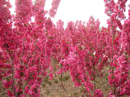 海棠園位于植物園西南角,占地28畝。海棠全世界共有35種,我國25種,該園收集薔薇科蘋果屬、木瓜屬的海棠品種27個,14845株。有傳統(tǒng)品種:貼梗海棠、垂絲海棠、西府海棠、木瓜海棠、梨花海棠等,還有引自北美的花果俱佳的絢麗海棠、道格海棠、鉆石海棠、霍巴海棠、紅玉海棠、草莓果凍海棠、王族海棠、粉芽海棠、火焰海棠等。海棠一樹千花,唐朝《花譜》稱海棠為“花中神仙”。每年三、四月間,滿坡的海棠萬花齊放,層層疊疊、連綿不斷、紅白相溶、如曉天的明霞。海棠園內(nèi)地形起伏變化,新古洛渠貫穿其中,渠邊種植水生植物,野趣天成,在水流平緩處種植荷花、睡蓮;臨水處栽植垂柳,可謂是“柳占三春色,荷香四座風(fēng)”。