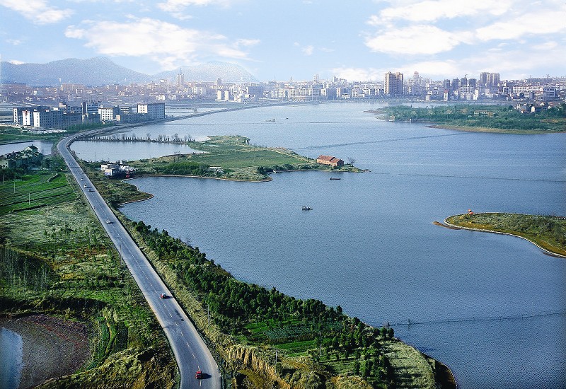 黃岡市河港、湖泊交織,30公頃以上湖泊38個。發(fā)源于大別山脈的倒水、舉水、巴水、浠水、蘄水和華陽河等六大水系,均自北向南流經(jīng)市境匯入長江。長江流經(jīng)市境215.5千米,故黃岡有“黃金水道”之稱。