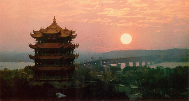 唐代文學家閻伯理在其《黃鶴樓記》中描述“聳構(gòu)巍峨,上依河漢,下臨江流......”可謂:“ 危乎,高哉!”無怪李白以“黃鶴西樓月,長江萬里情。春風三十度,空憶武昌城。送爾難為別,銜杯惜未傾。湖連張樂地,山逐泛舟行。諾謂楚人重,詩傳謝眺清。滄浪吾有曲,寄語棹歌聲!笔惆l(fā)自己心頭的感慨。