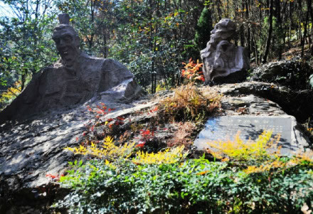 “撫琴石”,長8米,寬5米,石頭左邊是一個人在彈琴,右邊是一個人在聽琴,這就是俞伯牙和鐘子期當年“高山流水遇知音”的故事的再現(xiàn)。