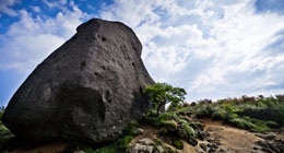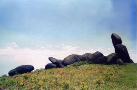 2、婦孺石:位于海拔1400米的茫茫草原之中,巍然挺拔,高約10米,上下由兩塊大小不等的石頭組成,遠(yuǎn)觀(guān)猶似一少婦,神態(tài)慈祥,悠然自在,懷抱其子,親切可人。故名。