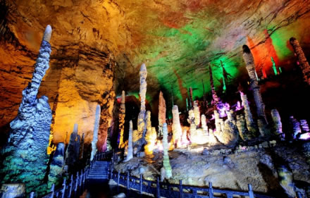 黃龍洞位于湖南省張家界市核心景區(qū)武陵源風景名勝區(qū)內,是世界自然遺產、世界地質公園武陵源的有機組成部分,屬典型的喀斯特巖溶地貌,以其龐大的立體結構洞穴空間、豐富的溶洞景觀、水陸兼?zhèn)涞挠斡[觀光線路獨步天下,被列為國際旅游洞穴會員、全國35個王牌景點之一、中國首批AAAA級旅游景區(qū)、中國旅游首批知名品牌、中國馳名商標、湖南省最佳旅游景區(qū)、張家界旅游精品線之一,享有“世界溶洞奇觀”、“世界溶洞全能冠軍”之美譽,2005年被評選為“中國最美旅游溶洞”。