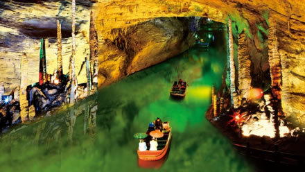響水河是黃龍洞內三條地下陰河中的一條,位于第二層。它全長2800米,平均水深平6米,最深處有12米,目前乘船游覽其中的一段為800米,時間約8分鐘左右。響水河平均水溫常年在攝氏16度左右,盛產國家二級保護動物娃娃魚和通體透明的“玻璃魚”。蕩舟響水河,沿途充滿神秘誘惑的風景,如龍王金盔、海螺吹天等景點都值得您慢慢欣賞和品味。空谷幽邃,岸危穹高。忽仰忽傾,若明若暗,恍若回到混沌的遠古時代。1992年聯(lián)合國世界自然遺產專家盧卡思考察響水河時,稱贊道:“黃龍洞是我見到的最漂亮的溶洞,還有這么美的陰河,真是不可思議!”