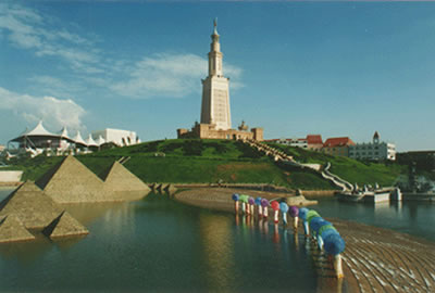 景區(qū)依山傍水,滿目青蔥,歐洲、東方、西亞園藝風格的主題園林更添了公園的靚麗和嫵媚;100多個世界名勝古跡各占地勢,構筑了厚重的人文歷史,彰顯了濃郁的異國情調,德國新天鵝城堡、埃及亞歷山大燈塔等大比例異國建筑氣勢恢宏,再現(xiàn)了古代人類的驚人創(chuàng)舉;文明山、文明湖、國際商業(yè)街、歐洲風情街、牛仔街、日本園、東南亞水鄉(xiāng)等一道道風姿各異、絢麗多彩的人文景觀,新開人間奇境,再創(chuàng)人類夢想。