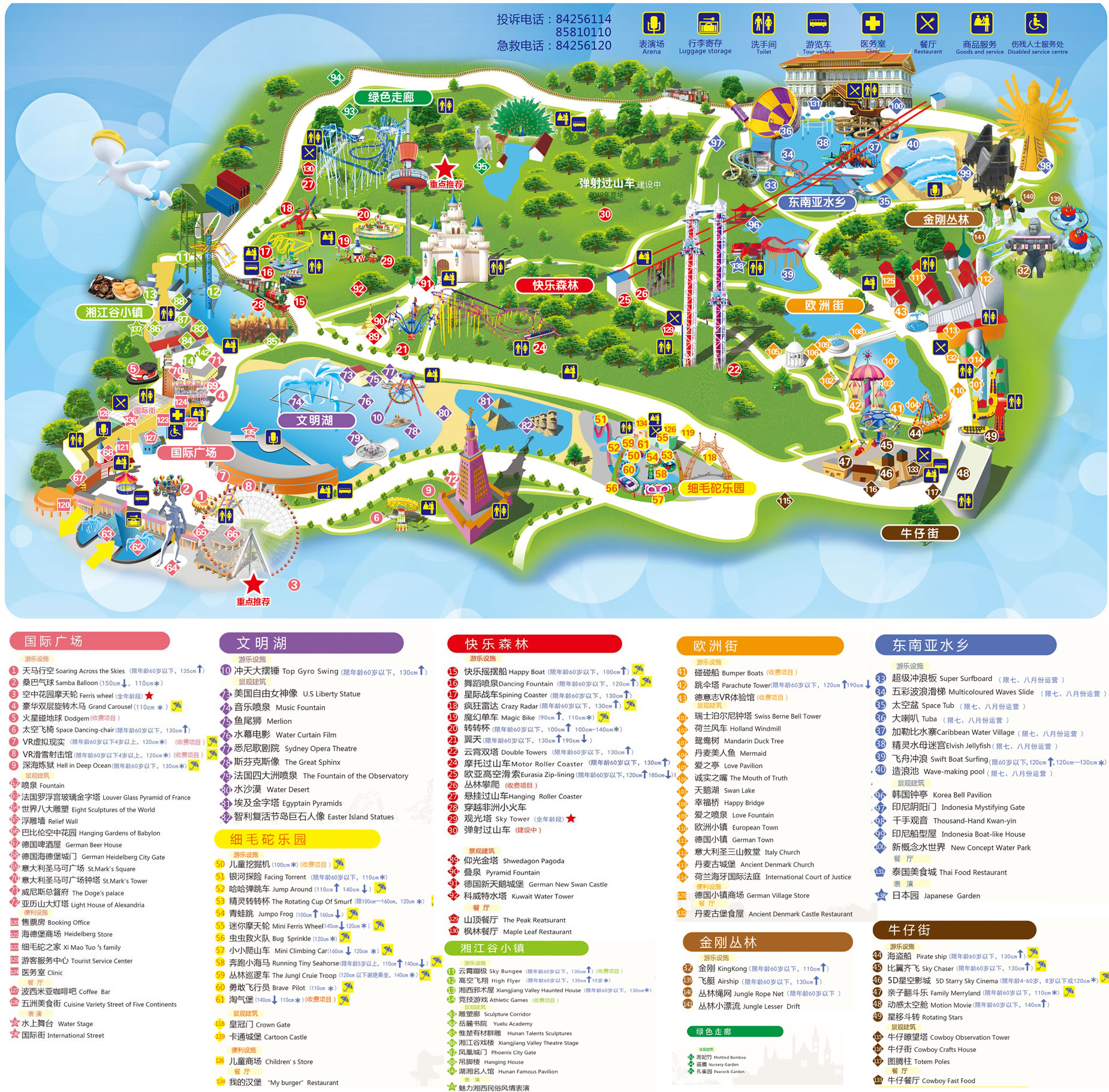 景區(qū)的娛樂設施領時尚潮流、開娛樂先鋒,集驚險性、刺激性、趣味性于一體。有國內最大的大型彩色三環(huán)過山車、橫跨歐亞兩洲的歐亞高空滑索、童趣盎然的漂流河等十余項的娛樂項目,讓您體驗極限刺激之余,盡情釋放青春激情。