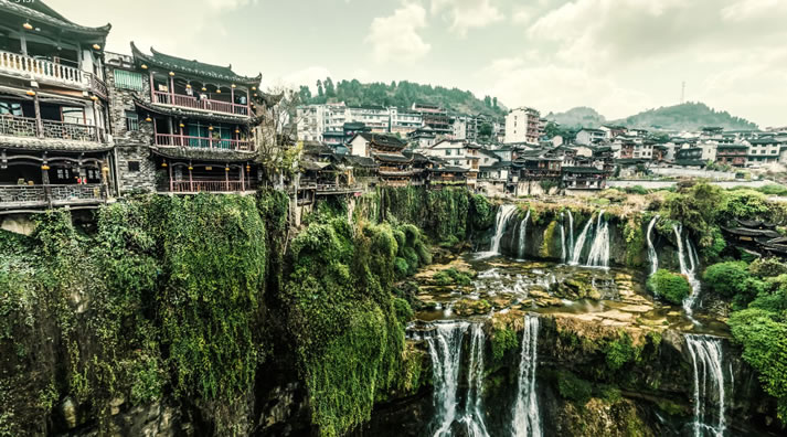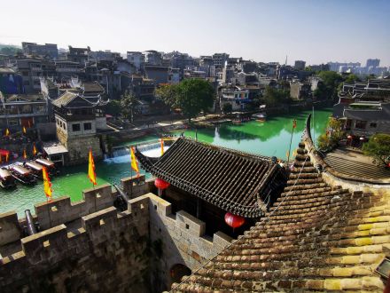 其地處武陵山脈南部、云貴高原東側(cè),因背依的青山酷似一只展翅欲飛的鳳凰而得名。鳳凰古城建于清康熙四十三年(1704年),東門和北門古城樓尚在。城內(nèi)青石板街道、江邊木結(jié)構(gòu)吊腳樓,以及朝陽宮、古城博物館、楊家祠堂、沈從文故居、熊希齡故居、天王廟、大成殿、萬壽宮等建筑,全都透著古城特色。古城現(xiàn)有文物古建筑68處,古遺址116處,明清時(shí)代特色民居120多棟,各種廟祠館閣30多座,是中國西南現(xiàn)存文物建筑最多的縣。