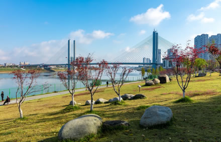 會龍山公園北接資江,南達花鄉(xiāng)路,西靠志溪河,東接資江一橋繁華路段,總面積152.2公頃。公園規(guī)劃為三個景區(qū),其中心區(qū)為佛教人文景區(qū),北為濱江景區(qū),南為自然山林景區(qū)。