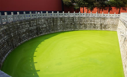 泮池位于萬仞宮墻北側(cè),水池為半圓形,周圍有石欄桿,稱為“泮池”,是文廟標(biāo)志性建筑之一。泮池下部原有兩組涵洞與宮墻外的運(yùn)瀆相通,池水終年不竭?箲(zhàn)期間泮池曾被填平,1970年重新開挖,現(xiàn)與運(yùn)瀆已不再相通。