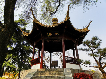 大成殿后是崇圣殿,亦稱先賢祠,歇山頂,檐下斗拱。殿后高處有敬一亭,亭東有飛云閣、飛霞閣等;閣前有御碑亭,碑上刻乾隆六巡江南時為朝天宮景區(qū)所題詩文,故名。敬一亭兩旁疊石堆山,筑水池,布置庭院,這里是治城的最高點(diǎn)。