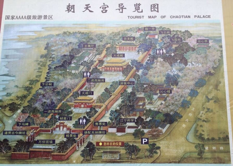 清朝道光年間因朝天宮屢遭火災(zāi),當(dāng)時風(fēng)水家把朝天宮大山門由朝正東,改為偏向東南。