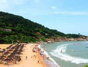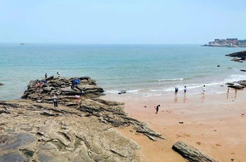 蘇馬灣的得名于明末將軍蘇子恒牧馬鷹游山的美麗傳說(shuō)這里山林茂密幽深,環(huán)抱玲瓏金灘,入林尋幽,林翳天日,溪響淙淙,鳥(niǎo)鳴啾啾;入宿木屋,夜聞風(fēng)濤澎湃,曉望海上日出,給您遠(yuǎn)避喧囂,恍隔世外的真切感受。海天一色”的碑石旁縱覽蒼海視野開(kāi)闊,在天與地的輝映下,海天一色分不清哪是海哪是天,“觀海亭上觀滄海,海天一色抒情懷”,這里正是游客最好的抒情之處。沿著沙灘漫步走到東面,四個(gè)紅字映入你的眼簾,這是新鐫刻的“海誓山盟”,一對(duì)對(duì)情侶常在此留影來(lái)表達(dá)他們“秦晉之約蘇馬灣,海誓山盟一世緣”的忠貞愛(ài)情。掩映在深深淺淺的綠樹(shù)叢中的小木屋,里面設(shè)施齊全,舒適而又溫馨,小木屋依山勢(shì)而建,環(huán)境位置恰倒好處,讓您充分領(lǐng)略到“臥床聽(tīng)濤聲,推窗觀日出”的美妙海景!≡谔K馬灣海灣東南隅三腳下,有一長(zhǎng)6米,高1.5米的天然巨石,石上刻有碑文,為漢代王莽時(shí)期東海郡與瑯琊郡界域刻石。刻石內(nèi)容大意:東?る耘c瑯琊郡柜(音巨)為界,因諸山以南屬朐,水以北屬柜,西直況其,朐與柜分高柜為界,東各承無(wú)極。始建國(guó)四年四月朔乙卯,以使者徐州牧治所書(shū)造。此刻石刻寫(xiě)于公元12年,距今約2000年,包含了王莽時(shí)期的政治變革及經(jīng)濟(jì)、軍事、文化和地理環(huán)境等諸多內(nèi)涵。諸多專(zhuān)家教授親自考察后稱(chēng)其為“國(guó)寶”。年日曬風(fēng)侵雨打浪蝕,形成了千姿百態(tài)、象形奇特的海蝕地貌,堪稱(chēng)“海蝕石博物園”,其中有的已成為當(dāng)?shù)貪O民圖騰崇拜的吉祥物。