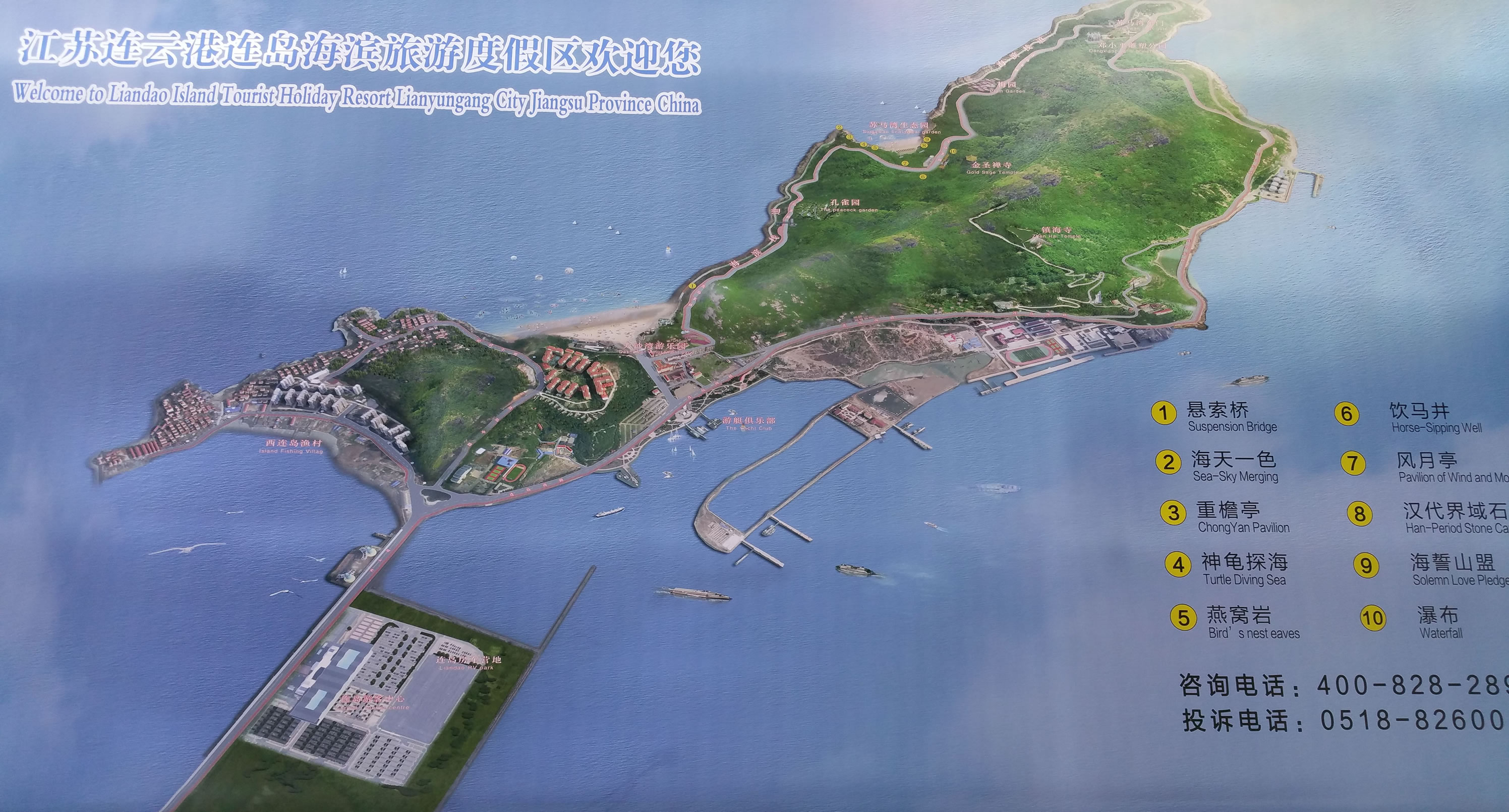 從無(wú)錫方向:上京滬高速至淮安下,再轉(zhuǎn)至寧連高速,在港口方向下高速,按指示牌行至連島。