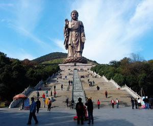 矗立在小靈山南麓的靈山大佛,包括蓮花座在內(nèi)通高為八十八米,相當(dāng)于一幢三十馀層樓房的高度,比“山是一尊佛,佛是一座山”的四川樂(lè)山大佛還要高出十七米,是迄今為止我國(guó)最高的巨型佛像。如果加上三層座基,總