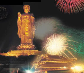 靈山大佛于 1997年11月15日落成開(kāi)光,海內(nèi)外高僧大德及各地信眾千萬(wàn)余人親臨現(xiàn)場(chǎng)。是日慈云瑞靄籠罩大佛金身,至開(kāi)光儀式舉行,祥云飄升,大霧竟奇跡般地散去,預(yù)示法輪常轉(zhuǎn)佛光昔照。
