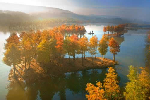 有山有水,山水相連,那才是旅游佳境。鐵山寺年降雨量在1000毫米以上,而山上的石頭又多為玄武巖,水順著石頭向山下流。涓涓細(xì)流匯集山澗,直奔天泉湖。天泉湖水域9平方公里,湖面開闊,輕霧迷朦。湖面四周層層山巒,近山濃翠,湖光山色交相輝映。湖水能見度可達(dá)十?dāng)?shù)米,常說水至清則無魚,這話用在天泉湖可謂相差甚遠(yuǎn)。天泉湖有百種魚,國家一級(jí)保護(hù)魚類“中華鱘”在天泉湖中試養(yǎng)成功。這里還建有大型養(yǎng)殖基地,盛產(chǎn)銀魚、鰱魚等。