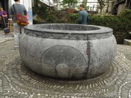 北斗七星井位于江西省上饒市婺源縣江灣鎮(zhèn)江灣景區(qū)內(nèi),北斗七星井體現(xiàn)了”天、地、人合一”的中國風水學最高原則,南側梨園河呈太極圖“S”形系。北宋初年,南唐國師何令通遭貶來到江灣靈山隱居,與蕭江六世祖江文采交往甚篤,便指引蕭江氏族人由旃坑遷居風水寶地云灣(現(xiàn)為江灣)。蕭江先祖在他的指引下,利用風水學的最高原理,對江灣的水系環(huán)境、建筑布局、街衢走向,山脈走勢等方面進行了改造。族人自遷云灣后人丁日益興旺、科第舉發(fā),其中村內(nèi)的北斗七星井便是國師運用風水學的典范。 中國古代的四個方位分別是“前朱雀后玄武、左青龍右白虎”,而江灣的地勢是玄武(后龍山)偏低,朱雀(對面攸山)偏高,朱雀屬火,也就是說南方火勢較旺,是一個較為不利的地形。當時何令通便想出在村中挖七口井,并按北斗七星狀分布,以七井之水鎮(zhèn)住攸山火勢。而北斗七星分布又是呈勺子狀的,從此,村內(nèi)即有了充足水源又有了舀水的勺子,攸山之火自然就被鎮(zhèn)住了。