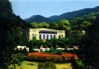 廬山會議舊址位于牯嶺東谷擲筆峰麓。原是蔣介石在廬山創(chuàng)辦軍官訓(xùn)練團的三大建筑之一,于1937年落成,名廬山大禮堂。解放后改名“人民劇院”。1959年中國共產(chǎn)黨八屆八中全會,1961年中央工作會議和1970年九屆二中全會均在此召開。毛澤東同志主持了這三次重要會議,F(xiàn)在,這里已辟為廬山會議紀念館。里面保存著當年許多珍貴的實物、照片、材料和根據(jù)紀錄片制作的錄相片,供游人觀看。 右側(cè)不遠處的“廬山大廈”為外觀4層、內(nèi)有6層的鋼筋水泥建筑,原為國民黨軍官訓(xùn)練團的中下級軍官住所,正面額上原有蔣介石題寫的“廬山傳習(xí)學(xué)舍”四個大字。位于會址和大廈中間的一座宮殿式建筑即為1935年落成的廬山圖書館。