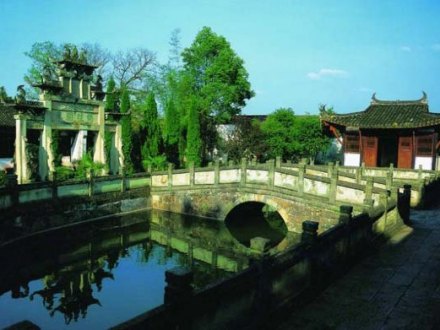妙濟(jì)橋位于梅嶺景區(qū)內(nèi),呈灰白色,為單孔石拱橋,橋欄有十二根石柱,每個石柱頂?shù)窨讨恢华{子,形態(tài)各異,栩栩如生。此橋曾為木橋,清朝嘉慶丁丑年改建為石橋,橋碑上刻著“嘉慶丁丑”、“秋月吉旦”等字樣。